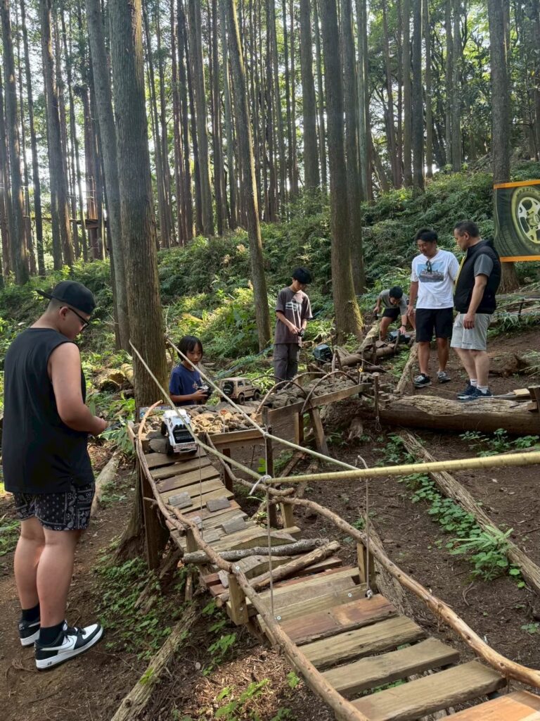 まずはBBQでお腹も心も満たしてから、場所を移動。大自然の中で、クローラーラジコンの難関コースに挑戦!